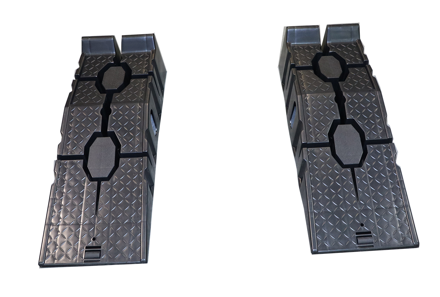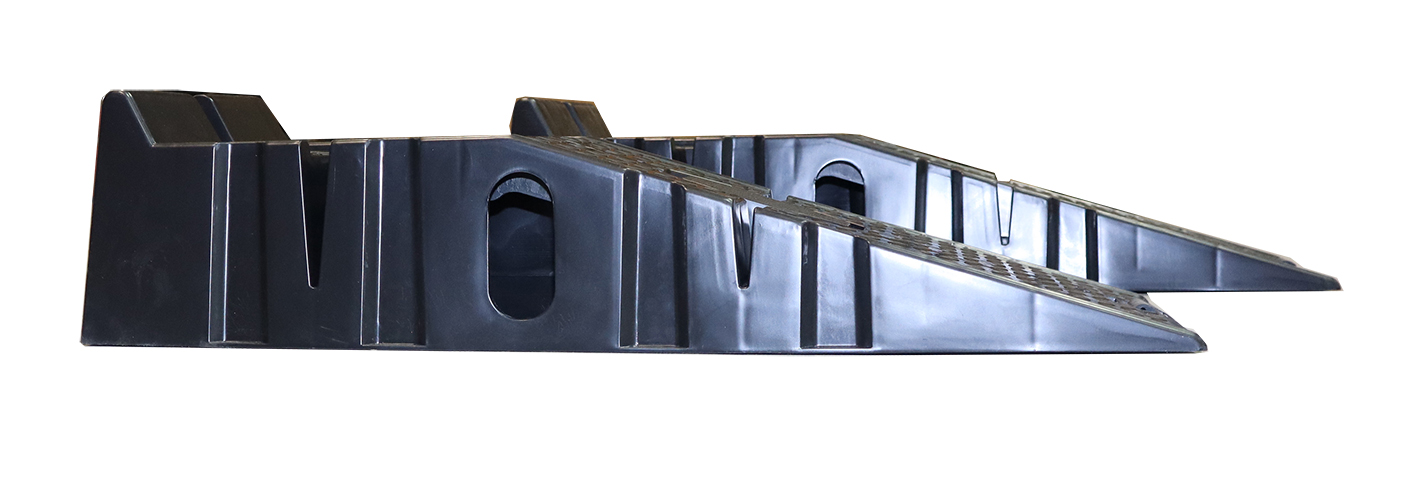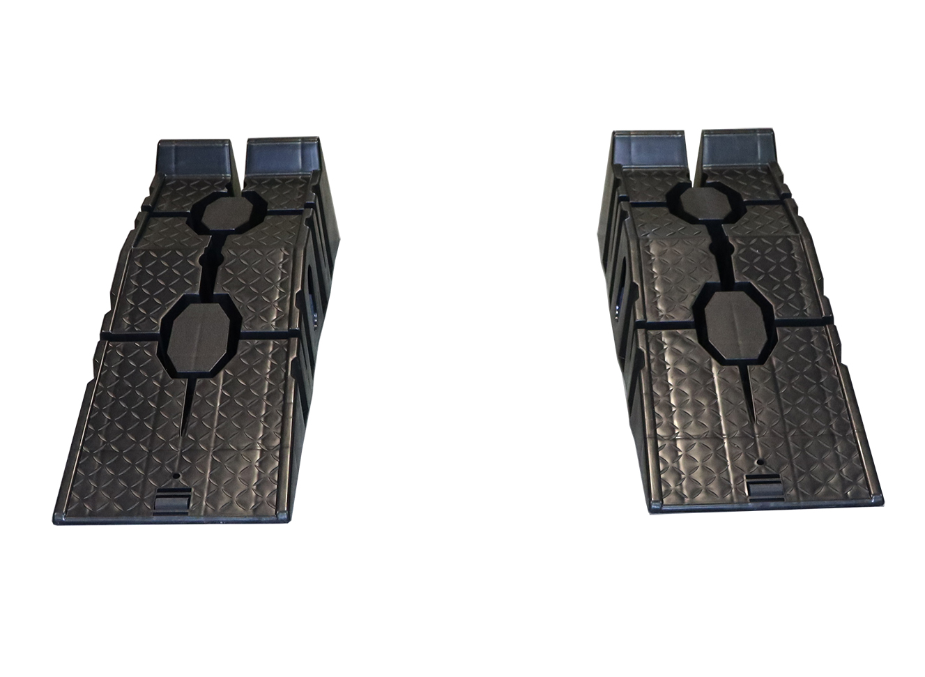 Заездные пластиковые трапы KRW-CRP изготовлены из прочного пластика и выдерживают автомобиль весом до 2,5 тонн. Используются при ремонте автомобиля, когда нет необходимости в подъеме на большую высоту или поблизости нет специальной эстакады или ямы. Из-за небольшого веса и габаритов, трапы можно перевозить в автомобиле.
